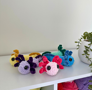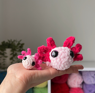 Make your own axolotl plushie and keychains! Both use the same pattern with just different hook and yarn sizes.