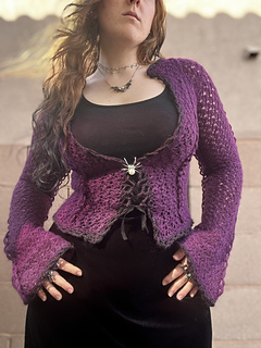 The poison ivy cardigan is a super soft and lacy cardigan with vine (or ivy) like stripes. It is the second piece in my new collection where I name designs after poisonous plants in hopes that you’ll get a confidence boost while wearing it and feel fierce.