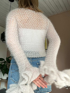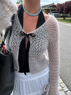 - I used lace weight mohair/silk blend yarn (78 % mohair and 28 % silk, 25g/210m) from Uldstedet (Danish store) but you can use any yarn weight and fiber (I used 125 g for my red size S/M one-standed cardigan).