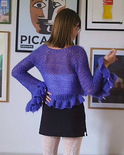This cardigan is super customizable meaning that you decide if you want both sleeve and body ruffles, if you only want either the sleeve or the body ruffles, or if you don’t want any ruffles. You also have the option of making the cardigan a vest. I also guide you through making the ruffles more or less intense.