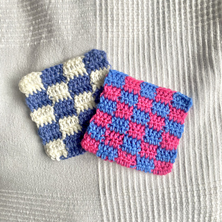 Hi friends! Here’s a great beginner’s project for people starting crochet or those wanting to work on color blocking. This pattern guides you through the process of crocheting a checkered square great for coasters or wall art. This pattern is designed to be both easy to follow and fun to complete. This is a very customizable pattern and an excellent scrap buster, so feel free to experiment with different colors and gauges! You can use any mm yarn and hook, but I recommend sizing down at least .50mm to make the switches appear fuller and less gappy. I used 4mm yarn with a 3mm hook. I worked each “checker” in 5 dbc increments, but you can go as low as 2 and as high as you’d like!