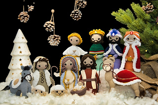 This crochet patterns contains a detailed description with a lot of step-by-step photos of how to make a nativity scene.