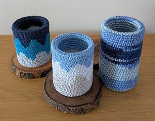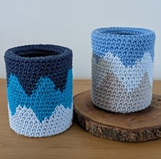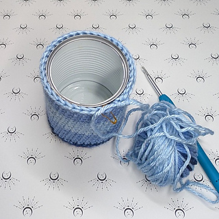 The pattern can be adjusted to cover different sized cans. I have included some colour ideas to use up stash yarn and create different patterns. It is a good use for multi yarns which give a nice finish without having to change colours.