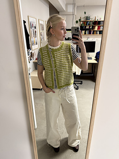 The vest is designed with approximately +15 cm of positive ease. For example: if you measure 95 cm around the fullest part of your bust, size 3 will fit as shown in the pictures. If you want a more oversized fit, choose a size based on a larger bust circumference. Choose a smaller size for a more fitted silhouette.