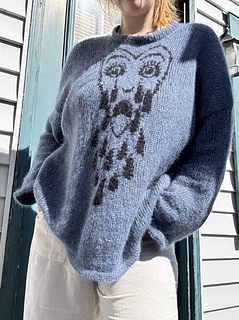 This is an advanced beginner drop shoulder sweater, worked top down in panels, knit in stockinette stitch. The back yoke is shaped using German Short Rows, and then the back panel is worked. The shoulders are picked up and stranded colour work is used to create the graphic on the front. The front and back panels are then seamed together. Sleeve stitches are picked up and knit in the round.