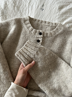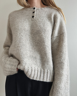 Cryo Sweater is an oversized knit with a relaxed silhouette and a classic henley button placket. The back flows smoothly into the front, creating a clean, polished shape. The result is a modern yet timeless sweater—easy to wear, with subtle details that make it special.