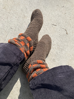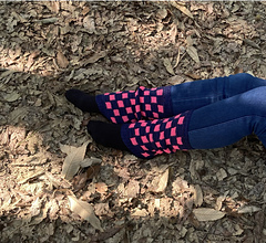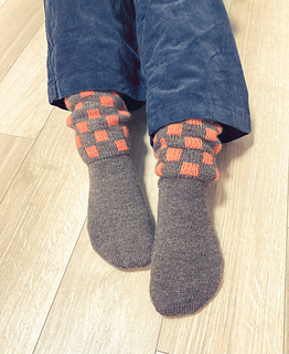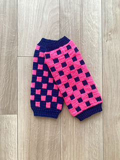 Double-knit legwarmers, with an option to make socks. The double-layered fabric keeps you warm, and of course, the piece is fully reversible. Add warmth and color to your steps with your favorite combinations!