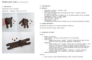 - a chart including the details of all the stitches that you can use to compare your projects with the model ;