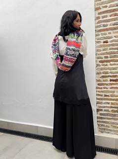 Esta bufanda se teje en redondo todo el tiempo dándole el largo que deseemos. Una vez tejido todo el cilindro, coseremos los bordes de montaje de puntos y cierre y plancharemos la prenda