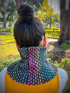 Podrás tejer el cuello con lana fingering o con lana DK.