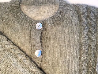 Die Jacke wird von unten nach oben gearbeitet. Zuerst wird der Rumpf geformt, anschließend die Ärmel und final die Knopfleiste angestrickt.