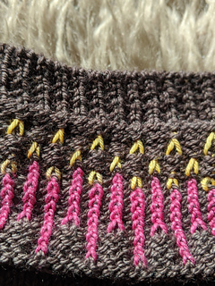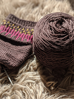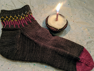 Cupcakes and Candles is a fairly basic sock with a few twists. Worked with a twisted ribbing to give a snug ankle feel. Slip stitches that bring the candles to light and reverse stockinette to give that cakey look and feel.
