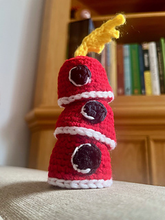 Ever higher! The free Cuptain crochet pattern is inspired by Toby Fox’s DELTARUNE and is a simple project for beginner crocheters, video game lovers, and those looking for cute accessories or stash buster projects. The finished piece measures about 2” tall.