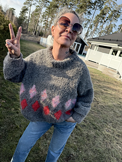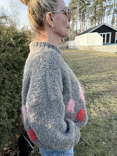 The neck is worked as a turtleneck but can also be folded down and sewn for a double neckband.