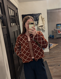 Worked from the top-down, the Cushendale Coat uses 2-stitch 2-colour cables to create the diamond pattern. The all-over colourwork pattern is simple to execute and very intuitive.