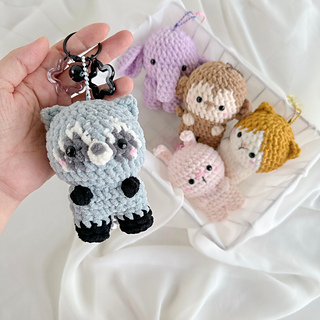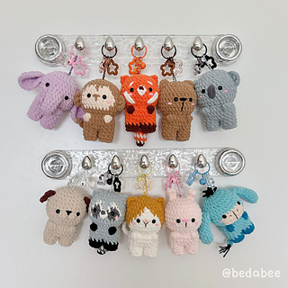 The Animals Keychain pattern includes patterns for a Dog, Cat, Donkey, Racoon, Bear, Bunny, Red Panda, Monkey, Elephant, and Koala.