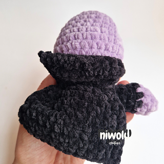 You will need yarn in lilac and black colours, as well as stuffing and safety eyes.