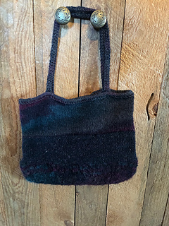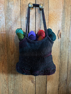 Though the yarn label calls for a needle size 7-9, we used a size 5 to get a tighter fabric. Two strands of the yarn are held double for the base of the bag, and the remaining ones are alternated as you work upwards to the top rim, which has an I-cord bind off. Enjoy!