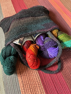 This cute little bag is great for holding your project, yarn or other goodies (and makes a nice quick gift!) We used our Cat Mountain Fiber Arts Fusion 250 yarn, which has five different yarns and textures in the five mini-skein bundle.