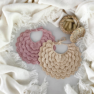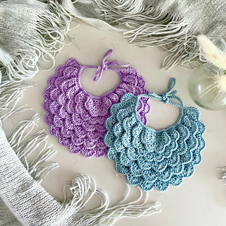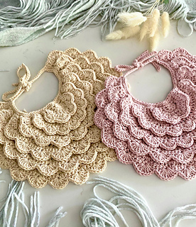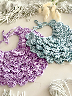 ✨ A delicate crochet baby bib pattern designed with overlapping shell stitches for a romantic scalloped look.