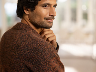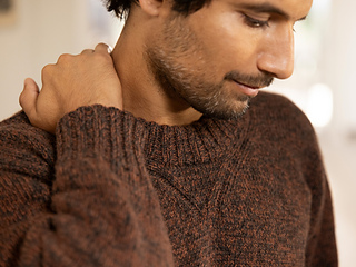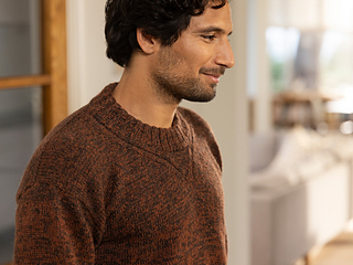 First, the back yoke is worked, with the shoulders shaped using short rows, the remainder of the yoke is knitted before it is set aside while the front is worked.
