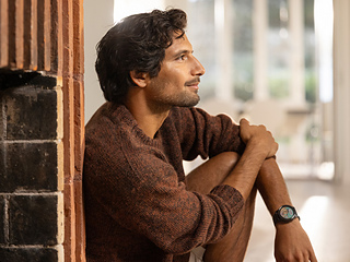 Stitches are picked up around the armholes for the sleeves, which are knitted to the desired length.