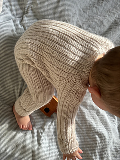 The Daefi Playsuit is knit top down, first knit flat to create the button band down the front, and then joined in the round before knitting the legs followed by the sleeves, using the magic loop technique. It is knit in an all over two by two ribbed patterning, with short rows at the back of the neck and the lower back. There is a full YouTube tutorial provided below for step-by-step support.