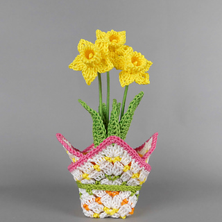 In addition to written crochet instructions, the crochet pattern also includes the crochet chart for the granny square style sleeve and the daffodil, as well as lots of detailed step-by-step photos so that you can easily recreate this beautiful spring decoration with daffodils.