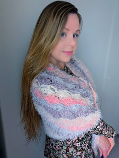 Crocheted with a beautiful bulky/chunky weight yarn (Caron Latte Cake), this shawl is perfect in all seasons.