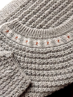The sweater can be made for babies, toddlers and young children as well, just create a smaller yoke by removing yoke increases to match the size of the model or clothes that fit him/her