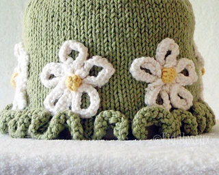 Having a Spring newborn? Make her a baby shower gift that’s sure to wow! A ruffled cast on is followed by simple stockinette stitch. The flowers are knit separately and sewn on afterwards.