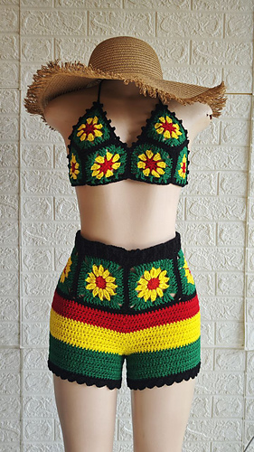 Step into colorful summer vibes with the Crochet Daisy Flower Shorts by shylercrochets! ✨