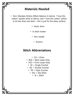 -I love this cotton - white sparkle- 2 skeins (if you’re doing the lace. If you’re doing the daisy edge, you just need one.)
