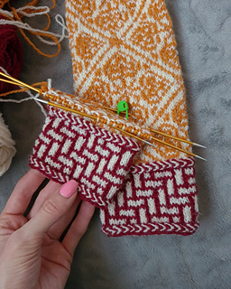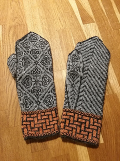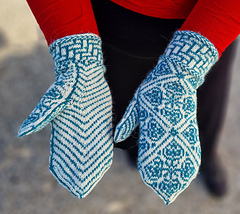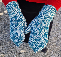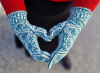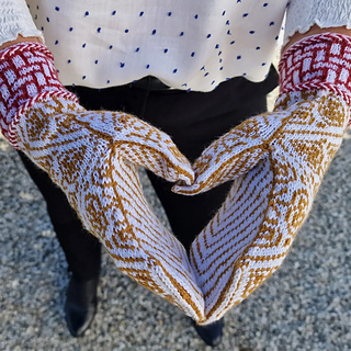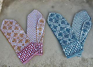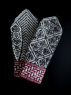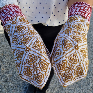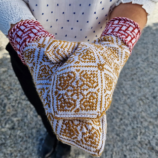 Mönstret på dessa vantar är inspirerade av målningen i taket på kyrkan, av golvet och av tornet.
