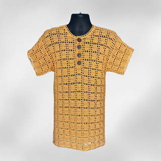 Create a stylish and breathable summer to fall look with the Dallin Crochet Men’s Shirt Pattern – a versatile and unisex crochet pattern designed for both men and women. This DIY crochet collarless t-shirt is perfect as a trendy handmade gift or a unique addition to any wardrobe. Available in 8 sizes (S–5XL) - finished chest sizes 36”–64 1/2” 91–161 cm, this lightweight, mesh-style henley shirt is made seamlessly in rows of rounds from the bottom up, eliminating side seams for a clean, professional finish. Crafted with DK 8 Ply or Light Worsted (3) yarn, this pattern is easily adjustable for sleeve length and overall fit, making it a customizable and gender-neutral crochet project.