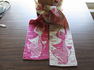 This is an old “doodle” I had trouble finding a use for. Turning it into a scarf seemed a good idea.