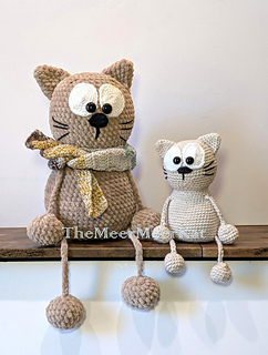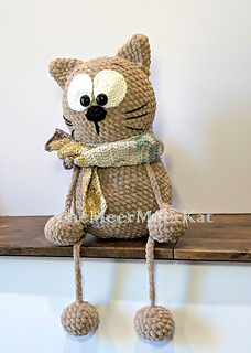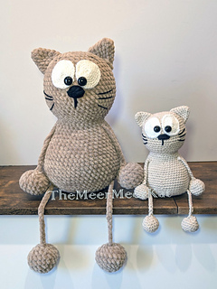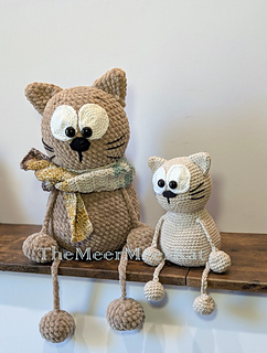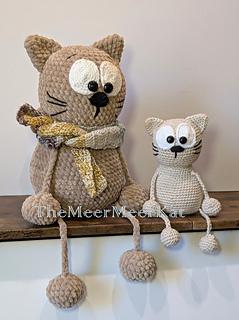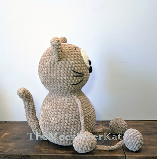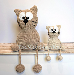 This beginner-friendly pattern creates an adorable sitting kitty with long dangly legs and a sweet, simple expression. The pattern is written for weight 6 (super bulky) yarn for a plush, huggable finish that stands about 13 inches tall, but it also works beautifully with weight 4 yarn for a smaller version.