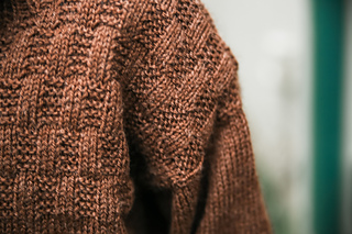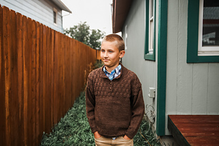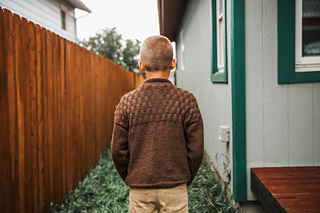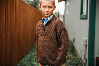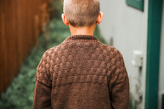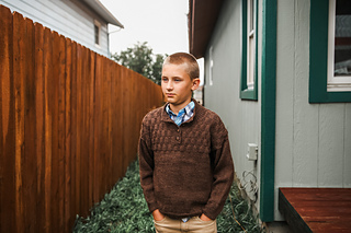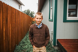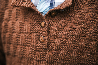 The Dathan Pullover is a children’s bottom-up drop-sleeve sweater with a buttoned Henley neck and high collar — designed at my 11-year-old son’s request! It’s worked in the round to the sleeve separation, then the front and back are knit flat before picking up stitches for the sleeves. The body features smooth stockinette that transitions into the same textured stitch pattern as the Dathan Hat, making them a perfect matching set.