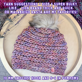 This pattern includes step by step photo instructions as well as a printable version, it is written in crochet shorthand, and has a few diagrams to explain special stitches. I have also included step by step photos of how to add a pom pom and hat tag as well as how I like to weave in my ends.