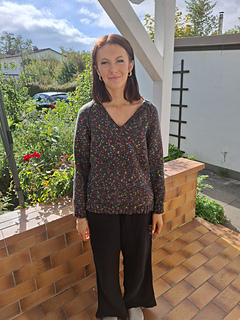 This sweater is knitted in one piece – completely seamless – making it both comfortable to wear and enjoyable to knit. The design is versatile, easy to style, and suitable for everyday wear as well as special occasions.