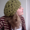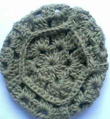 This is the first project I’ve put on my weblog. It is really nice to make. It is made out of 5 crochet granny-squares and a pantagon and a knitted rim.