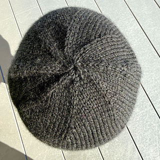 This sample is knit in Purl Soho Nigh DK in Crow Feather and Lilac Bloom.