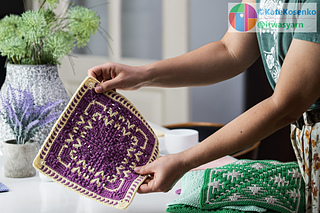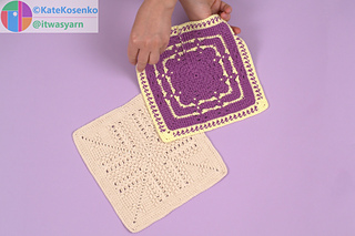 This granny square pattern includes step-by-step written instructions in English (US terminology) and graph chart for making an 11-inch square (using light worsted yarn), which is suitable for dishcloths (it can be made smaller if needed).