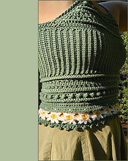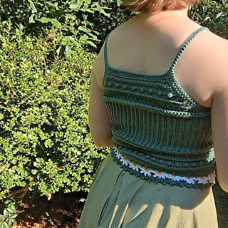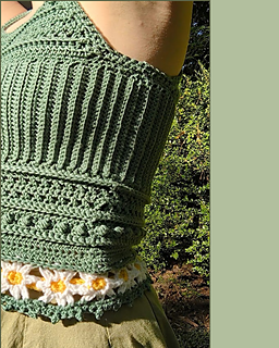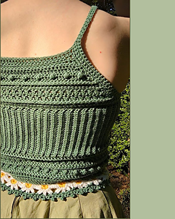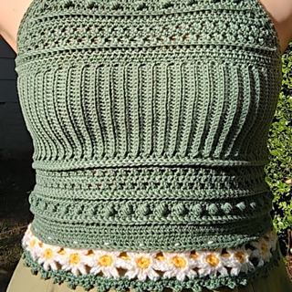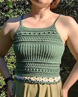 Introducing the Decidedly Daisy Tank Top! This slightly cropped top is designed to stretch over the bust and have a small amount of positive ease around the waist. A high neckline and closed back mean this top is wearable for everyday, while the textured stitching and flower detail at the hem means it’s special enough for any occasion.
