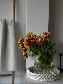 Minimal, functional, and effortlessly elegant — this crochet round tray with a wooden base is the perfect handmade accent for your home. Use it to serve coffee, style your favorite candles, or display seasonal décor. With its clean texture and modern design, it blends seamlessly into cozy, balanced interiors.