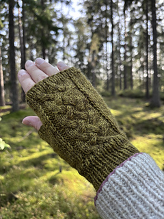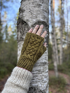 The pattern for Deep Forest Fingerless Mittens is published as the Seasonal Club pattern in October at Nordic Knitting Society.