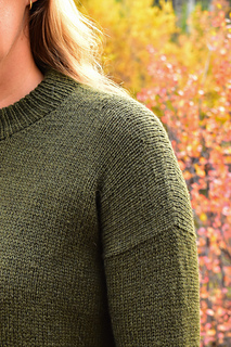 Deep Moss is a simple, top-down, drop-shoulder pullover that has been elevated with well thought out shoulder shaping. Its understated and classic style make it an essential addition to any handknit wardrobe.