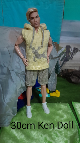 This pattern is designed for the 32cm male fashion doll but it fits a 30cm Ken doll too.