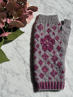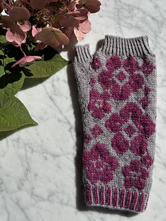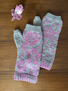 There is a lot of heart that went into the concept of Deflora Fingerless Mittens. These mittens were designed for a co-worker who had to undergo surgery for a malignant growth on her hand. I wanted to knit her a pair of mittens to protect her hand while her wound heals.