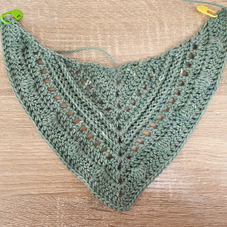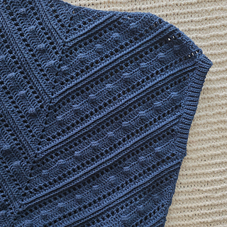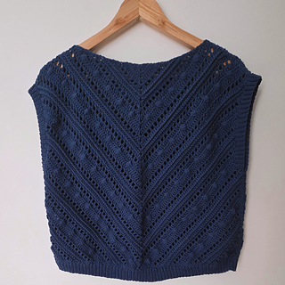 The construction is truly engaging because it doesn’t follow the usual top-down or bottom-up method. Instead, it starts from the center of the neckline, growing outward and downward simultaneously to later form the sides. It’s addictive to watch the garment take shape with every row!